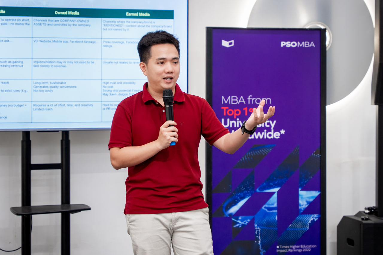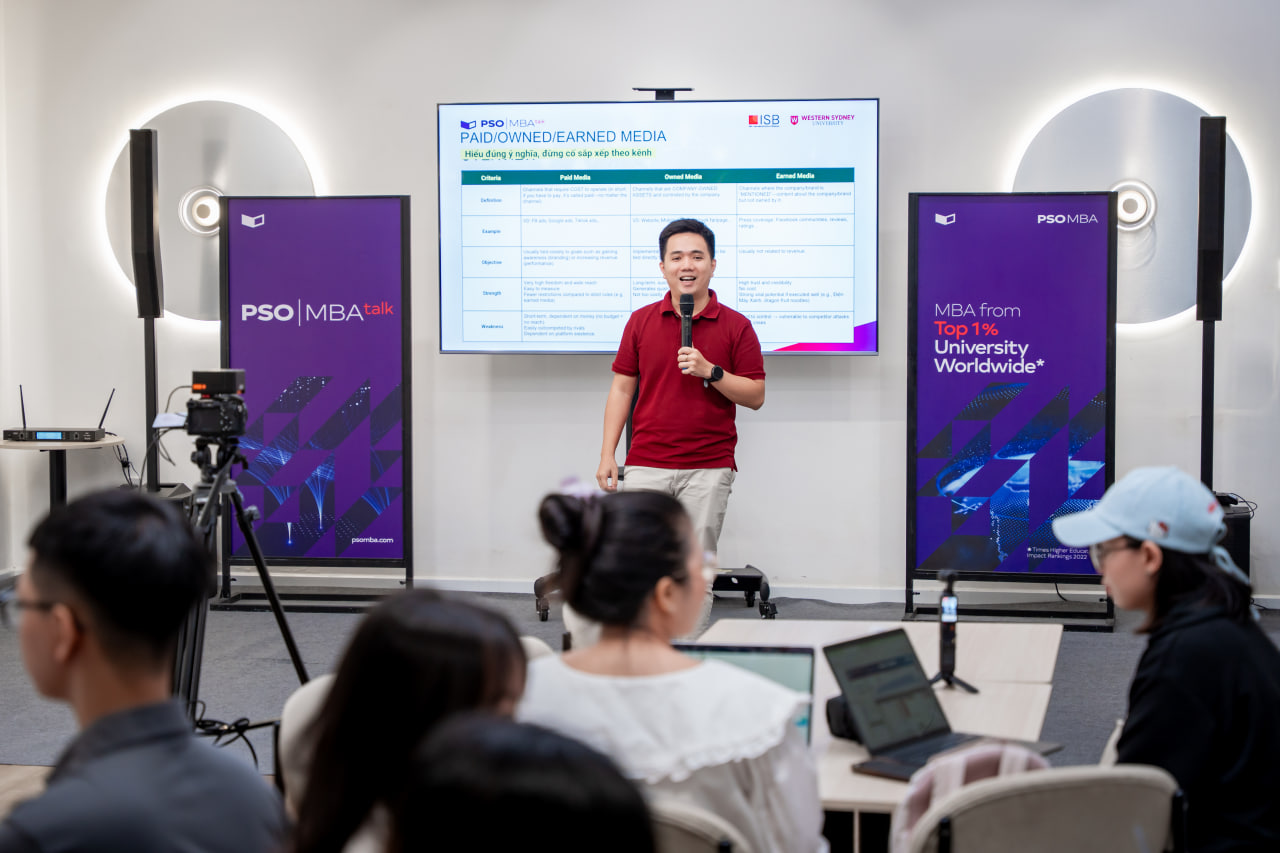Tiếp nối, ông Lưu Đình Hưng giới thiệu các loại hình Paid-Owned-Earned Media, đồng thời chia sẻ cách áp dụng các hình thức media này trong case study mà ông đã thực hiện. Từ đó, học viên PSO MBA và khán giả có thể nắm bắt cách ứng dụng các loại hình media để tối ưu hóa hiệu quả marketing trong thực tiễn.