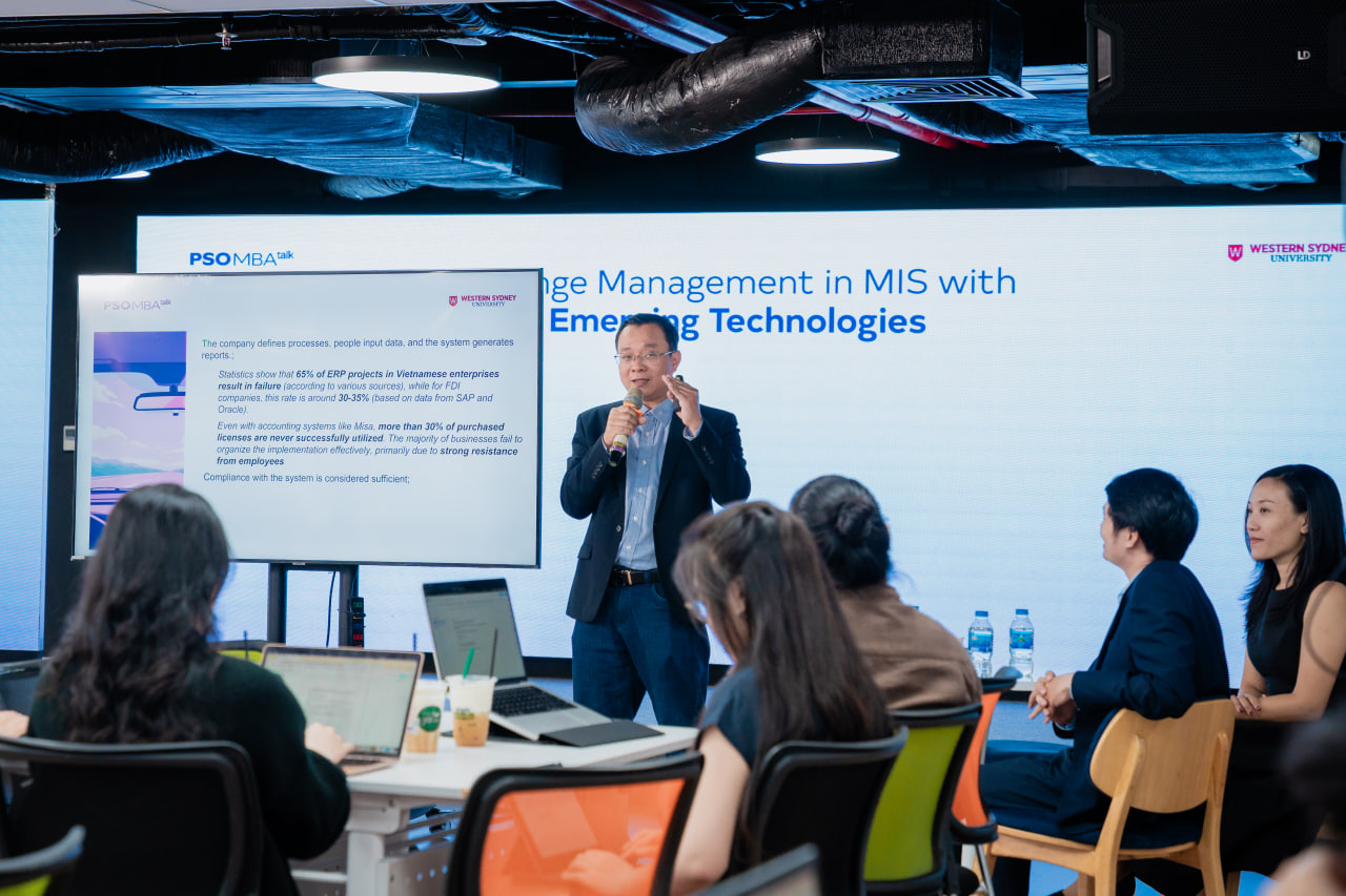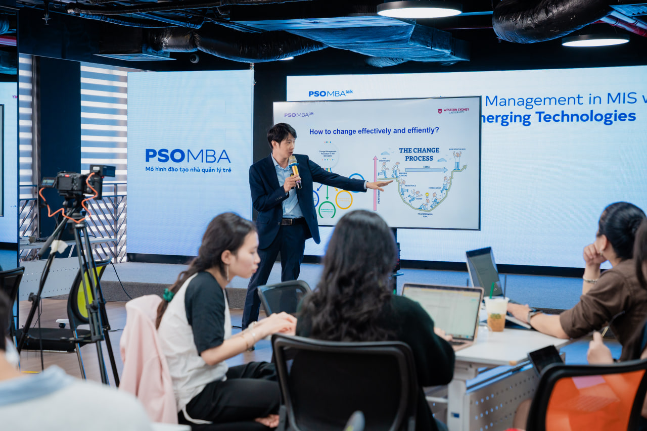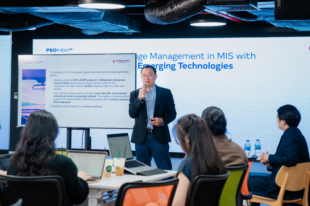 Vừa qua, học viên PSO MBA đã có buổi MBA Talk #170 thảo luận chuyên sâu về quản trị thay đổi trong hệ thống MIS khi AI và các công nghệ mới đang tái định nghĩa cách doanh nghiệp vận hành. Buổi chia sẻ được dẫn dắt bởi thầy Đoàn Anh Tuấn – ISB Lecturer, cùng góc nhìn thực tiễn từ anh Nguyễn Cát Minh – Founder & CEO, GIACAT Technology Solutions và chị Nguyễn Bảo Khanh – Founder, Learneris AI.