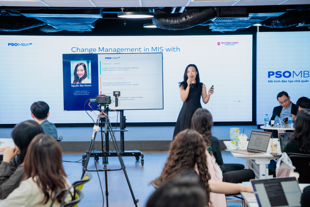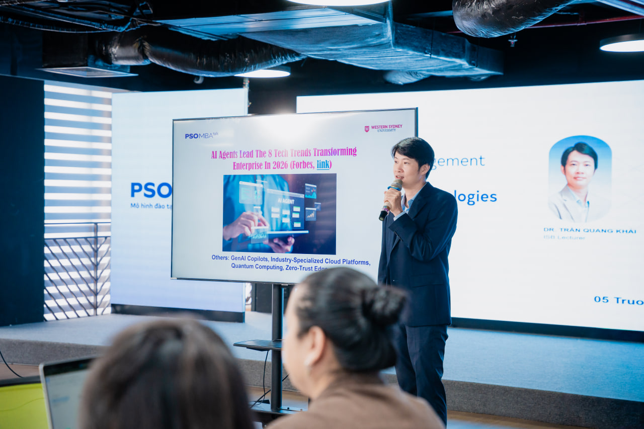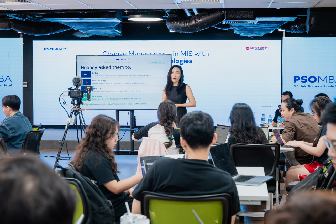 Vừa qua, học viên PSO MBA đã có buổi MBA Talk #170 thảo luận chuyên sâu về quản trị thay đổi trong hệ thống MIS khi AI và các công nghệ mới đang tái định nghĩa cách doanh nghiệp vận hành. Buổi chia sẻ được dẫn dắt bởi thầy Đoàn Anh Tuấn – ISB Lecturer, cùng góc nhìn thực tiễn từ anh Nguyễn Cát Minh – Founder & CEO, GIACAT Technology Solutions và chị Nguyễn Bảo Khanh – Founder, Learneris AI.