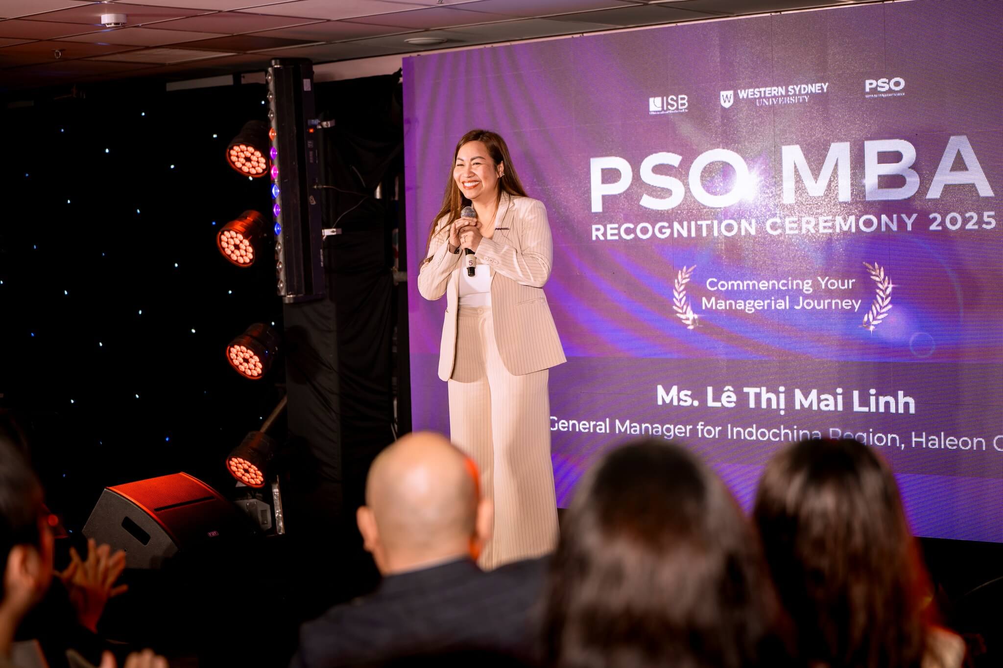 Từ góc nhìn của người lãnh đạo, chị Lê Thị Mai Linh – General Manager for Indochina Region, Haleon group nhắc về giá trị của sự thay đổi nội tâm: muốn tạo chuyển hóa cho người khác, trước hết phải dám thay đổi chính mình. Và trong những phút lắng đọng của buổi lễ, Dr. Tăng Thường Phát – Academic Director, PSO Institute, người đồng hành cùng học viên từ những ngày đầu tiên đến dự án tốt nghiệp cuối cùng, chia sẻ niềm xúc động khi nhìn thấy sự trưởng thành rõ rệt của từng học viên – điều mà thầy gọi là “giá trị thật sự của hành trình học”.